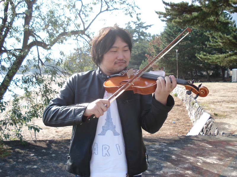 バイオリンを持つとおぼっちゃまに見えます。 笑