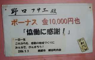 3年前には、集落の蓄えから全世帯(約110世帯)に1万円ずつボーナスを配った。