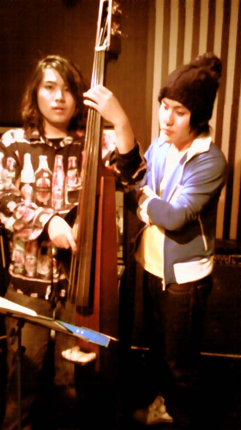 本邦初公開☆ サポートメンバーの 金子知史くん(写・左)とcHoco。